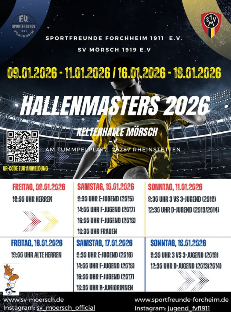 Der Winter ist traditionell die Zeit, in der der Motoball kurz durchatmet – und dennoch bleibt es bei uns nie wirklich ruhig. Denn: Im Januar wartet mit den Hallenmasters 2026 das nächste sportliche Highlight in Rheinstetten. Organisiert vom SV Mörsch 1919 e.V. und den Sportfreunden Forchheim 1911 e.V., trifft sich an zwei Wochenenden wieder die regionale Fußballszene in der Keltenhalle Mörsch.